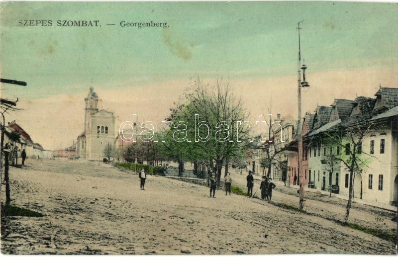 Szepesszombat, Georgenberg, Spisská Sobota; Fő tér, templom, utcakép. ... https://www.darabanth.com/de/325-Fernauktion/325.0/Ansichtskarten/Slowakei~2500006/Szepesszombat-Georgenberg-Spisska-Sobota-Fo-ter-templom-utcakep-Kiado-Ifj-Kirner-Karoly~II1808573