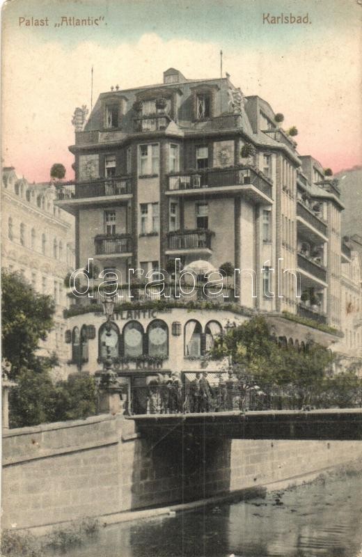 Karlovy Vary, Karlsbad; Palast Atlantic / hotel, bridge https://www.darabanth.com/de/325-Fernauktion/325.0/Ansichtskarten/Tschechische-Republik~2500022/Karlovy-Vary-Karlsbad-Palast-Atlantic-hotel-bridge~II1809229