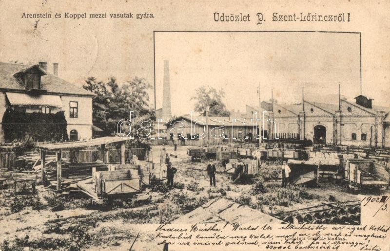 Beschreibung: 1902 Budapest XVIII. Pestszentlőrinc, Pusztaszentlőrinc, Szentlőrinc; Orenstein és Koppel mezei vasutak gyára, iparvasút, munkások. Podoletz Gusztáv kiadása (EK)