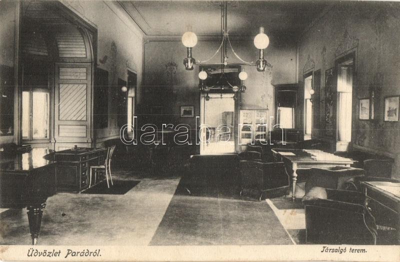 Beschreibung: 1909 Parádsasvár, Parád-Sasvár, Kastély, Társalgó terem, belső