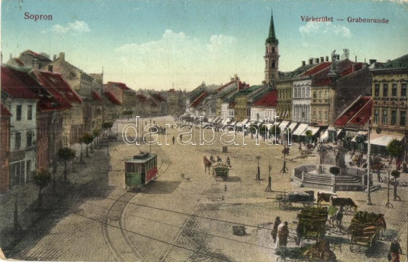 1918 Sopron, Várkerület, villamos, piac, Lang Frigyes üzlete https://www.darabanth.com/de/325-Fernauktion/325.0/Ansichtskarten/Ungarn~2500004/1918-Sopron-Varkerulet-villamos-piac-Lang-Frigyes-uzlete~II1811453