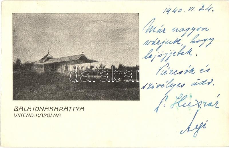 1940 Balatonakarattya, Vikend kápolna https://www.darabanth.com/de/325-Fernauktion/325.0/Ansichtskarten/Ungarn~2500004/1940-Balatonakarattya-Vikend-kapolna~II1808978