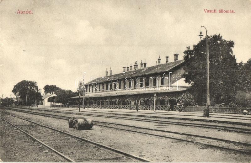 Aszód, vasútállomás. Huszerl Sándor és fia kiadása https://www.darabanth.com/de/325-Fernauktion/325.0/Ansichtskarten/Ungarn~2500004/Aszod-vasutallomas-Huszerl-Sandor-es-fia-kiadasa~II1805518
