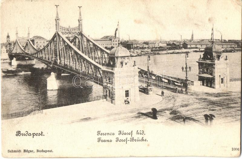 Budapest, Ferenc József híd, Schmidt Edgar (EK) https://www.darabanth.com/de/325-Fernauktion/325.0/Ansichtskarten/Ungarn~2500004/Budapest-Ferenc-Jozsef-hid-Schmidt-Edgar-EK~II1805228