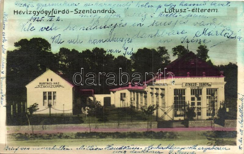 Hévízszentandrás (Hévíz), Lótusz étterem, Kurtács-ház, Szikvízgyár, Ku... https://www.darabanth.com/de/325-Fernauktion/325.0/Ansichtskarten/Ungarn~2500004/Hevizszentandras-Heviz-Lotusz-etterem-Kurtacs-haz-Szikvizgyar-Kurtacs-Laszlo-et~II1396400