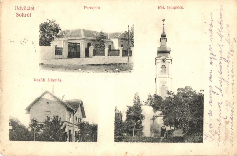 Beschreibung: Solt, Parókia (parochia), Református templom, vasútállomás (EB)
