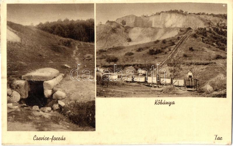 Tar, Kőbánya csillékkel, Csevice-forrás. Tóth József kiadása https://www.darabanth.com/de/325-Fernauktion/325.0/Ansichtskarten/Ungarn~2500004/Tar-Kobanya-csillekkel-Csevice-forras-Toth-Jozsef-kiadasa~II1810428
