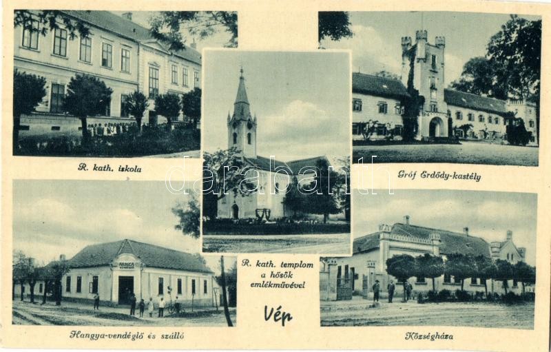 Vép, Községháza, Római katolikus templom és iskola, Hősök emlékműve, G... https://www.darabanth.com/de/325-Fernauktion/325.0/Ansichtskarten/Ungarn~2500004/Vep-Kozseghaza-Romai-katolikus-templom-es-iskola-Hosok-emlekmuve-Grof-Erdody-kastel~II1810493