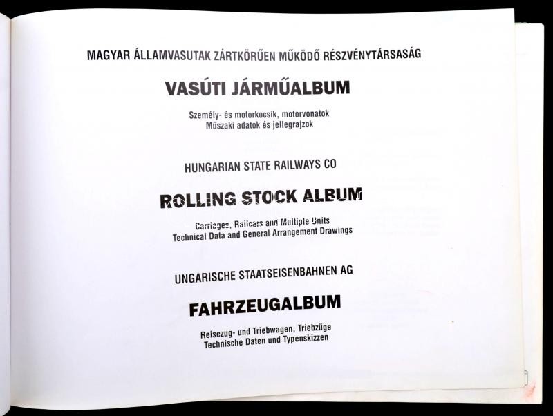 MÁV Zrt. Vasúti járműalbum. I. kötet. Személy-, és motorkocsik, motorvonatok. Műszaki adatok és jellegrajzok. Szerk.: Mezei István. Bp.,2007, MÁV. Kiadói kartonált papírkötés, jó állapotban./ Hungarian State Railways Co. Rolling Stock Album. I. volume: Carriages, railcars and multiple units. Technical Data and General Arrangement Drawings. Bp.,2007, MÁV. Paperbinding, in Hungarian language.