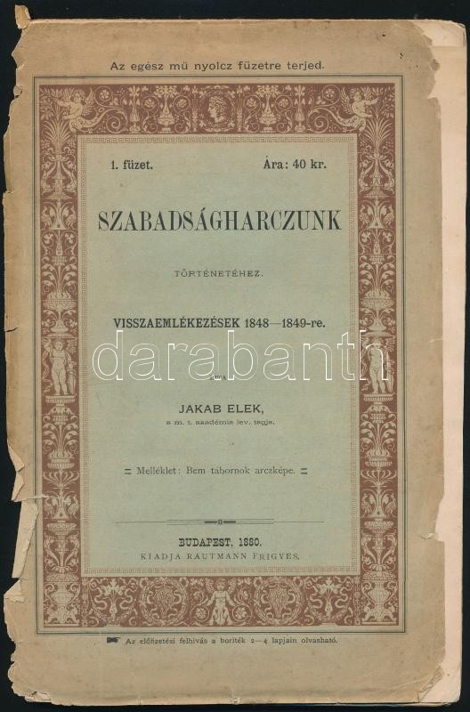Jakab Elek: Szabadságharcunk történetéhez. Visszaemlékezések 1848-1849... https://www.darabanth.com/de/325-Fernauktion/325.0/Bucher/Bucher-Geschichte~1000004/Jakab-Elek-Szabadsagharcunk-tortenetehez-Visszaemlekezesek-1848-1849-re-1-fuzet-Bp-188~II1697790