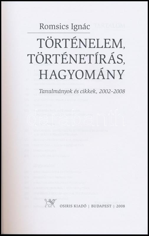 Romsics Ignác: Történelem, történetírás, hagyomány. Bp., 2008, Osiris.... https://www.darabanth.com/de/325-Fernauktion/325.0/Bucher/Bucher-Geschichte~1000004/Romsics-Ignac-Tortenelem-tortenetiras-hagyomany-Bp-2008-Osiris-Kartonalt-papirkot~II1812000