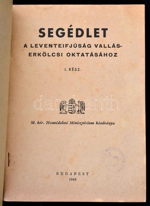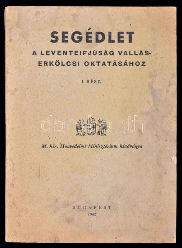 Segédlet a leventeifjúság vallás-erkölcsi oktatásához. I. rész. (Unicus!) M. Kir. Honvédelmi Minisztérium kiadványa. Bp., 1943, Athenaeum-ny.,188 p. Kiadói papírkötés, az elülső borító foltos.