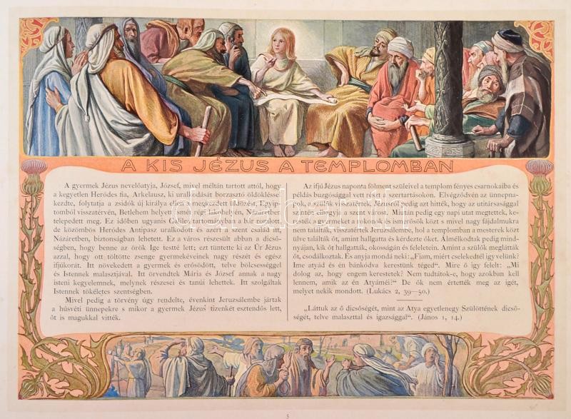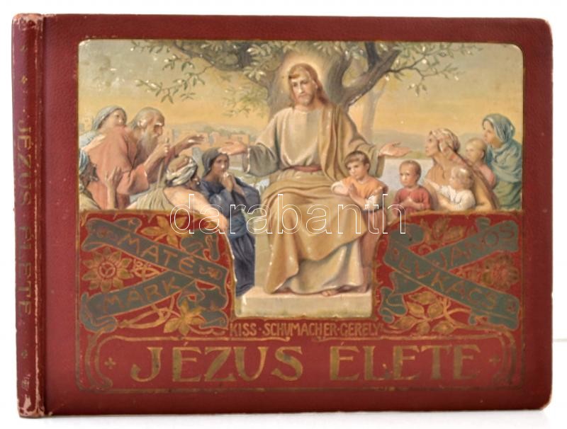 Kiss János - Gergely József: Jézus élete. Bp., 1903, Egyházi Közlöny. Szecessziós képekkel gazdagon illusztrált nagyalakú kiadvány. Schumacher Fülöp képeivel. Díszes, aranyozott, festett, laza vászonkötésben, apró kopásokkal.