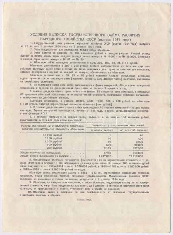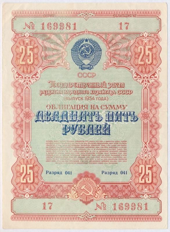 Soviet Union 1954. 25 Rubles lot... https://www.darabanth.com/de/325-Fernauktion/325.0/Numismatik/Aktien-und-Tickets~2000005/Szovjetunio-1954-25R-sorsjegy-TIII-Soviet-Union-1954-25-Rubles-lottery-ticket-CF~II1805884