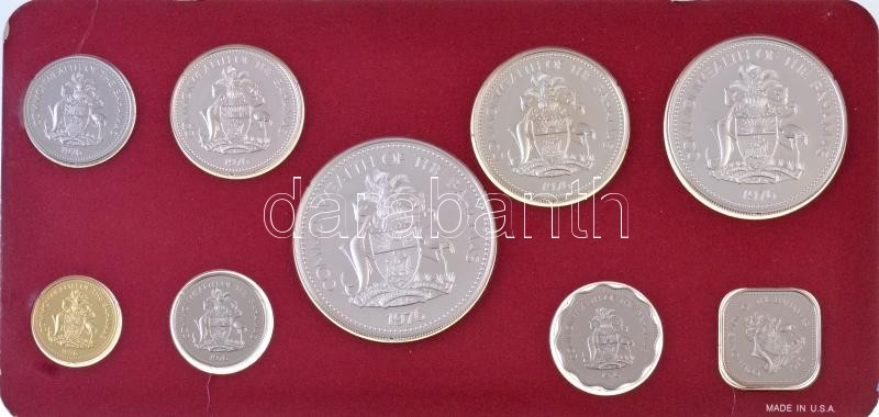 Bahamas 1976. 1 Cent - 5 Dollars (9xdiff) coin set in case, including 1976. 50 Cents Ag + 1 Dollar Ag + 2 Dollars Ag + 5 Dollars Ag C:PP