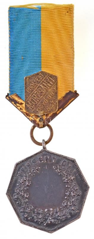 Beschreibung: ~1910. " "Küzdj és bízva bízzál / Verseny díj" peremén jelzett Ag díjérem mellszalagon, a szalagon "Budapest Morzsányi" gyártói jelzéssel (~17g/34mm) T:2 patina