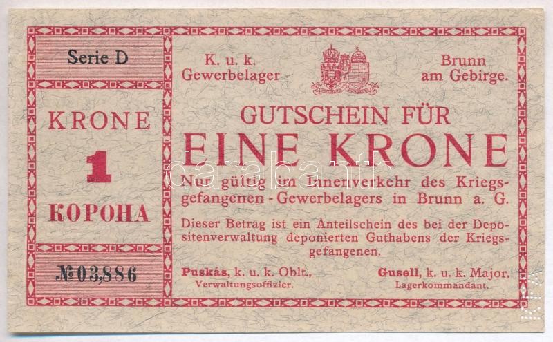 Ausztria / Brunn hadifogolytábor 1917. 1K "KFA" perforációva... https://www.darabanth.com/de/325-Fernauktion/325.0/Numismatik/Notgeld-aus-Papier-und-Metall~2000006/Ausztria-Brunn-hadifogolytabor-1917-1K-KFA-perforacioval-TII-ragasztasnyom-Austria-Brun~II1808455