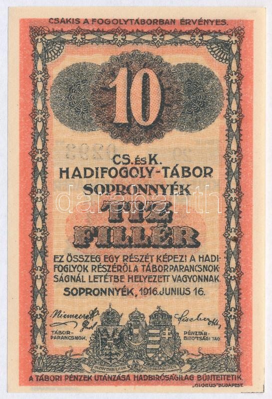 Beschreibung: Sopronnyék / hadifogolytábor 1916. június 16. 10f arab sorozat- és sorszám T:I