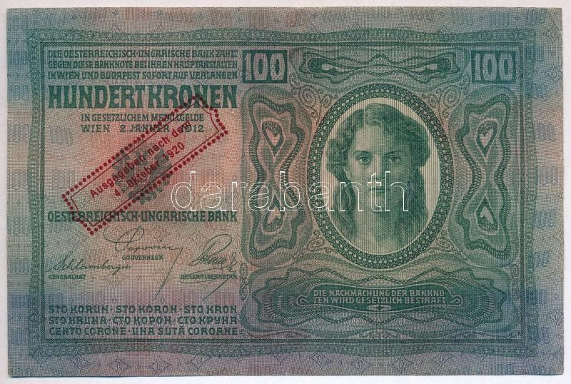 Beschreibung: 1912. 100K hamis "Ausgegeben nach dem 4. Oktober 1920" felülbélyegzéssel (fake overprint) T:III szép papír