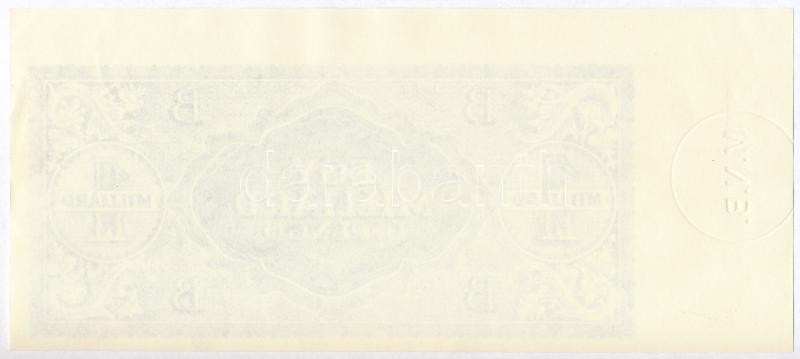Beschreibung: 1946. 1.000.000.000BP hátoldali fázisnyomata, "M.N.B." szárazpecséttel, jó minőségű másolat / good copy T:I-