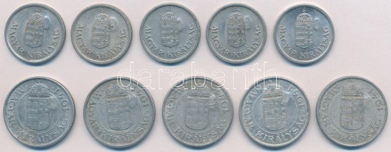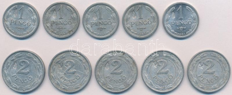 1941-1944. 1P Al (5x) + 2P Al (5x) mindegyik hamis sarló-kalapács és m... https://www.darabanth.com/de/325-Fernauktion/325.0/Numismatik/Ungarische-Munzen-und-Munzen-mit-ungarischem-Munzzeichen~2000008/1941-1944-1P-Al-5x-plus-2P-Al-5x-mindegyik-hamis-sarlo-kalapacs-es-magyar-cimeres-ellenjeggyel~II1809785