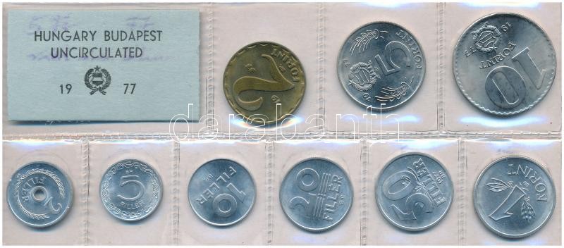 1977. 2f-10Ft (9xklf) érmés forgalmi sor fóliatokban T:1 Adamo FO10 https://www.darabanth.com/de/325-Fernauktion/325.0/Numismatik/Ungarische-Munzen-und-Munzen-mit-ungarischem-Munzzeichen~2000008/1977-2f-10Ft-9xklf-ermes-forgalmi-sor-foliatokban-T1-Adamo-FO10~II1806519