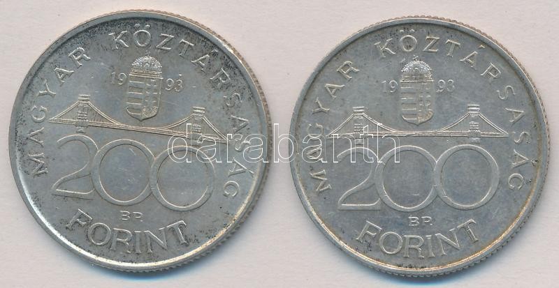 Beschreibung: 1993. 200Ft Ag "MNB" (2x) T:2