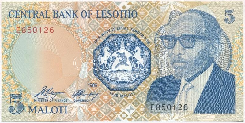 Lesotho 1989. 5 Maloti C:UNC https://www.darabanth.com/de/325-Fernauktion/325.0/Numismatik/Weltweit-Banknoten~2000012/Lesotho-1989-5M-TI-Lesotho-1989-5-Maloti-CUNC~II1804933