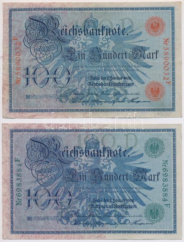 German Empire 1908. 100 Mark (2xdiff) red and green seal C:F