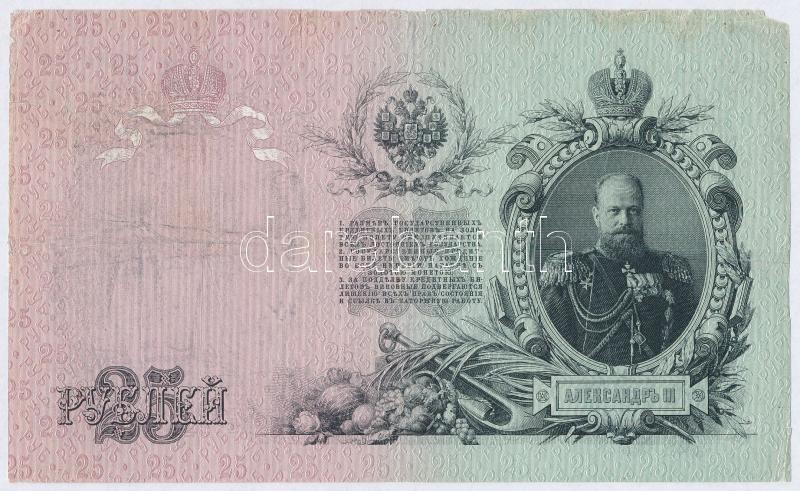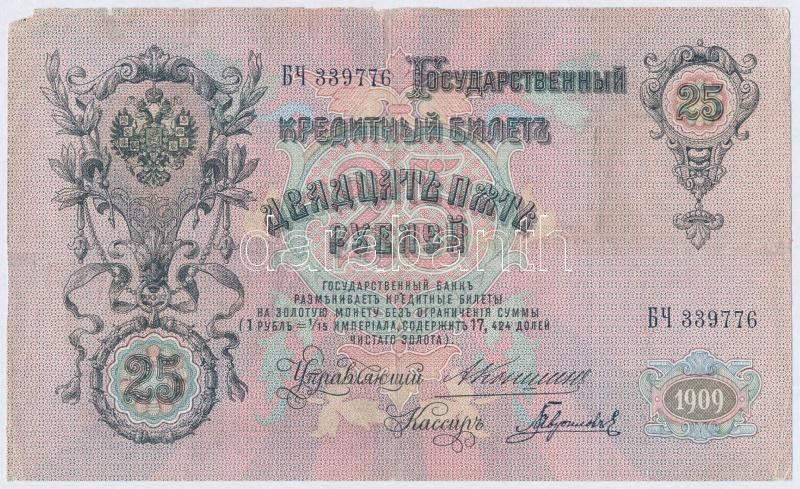 ... https://www.darabanth.com/de/325-Fernauktion/325.0/Numismatik/Weltweit-Banknoten~2000012/Orosz-Birodalom-1909-1912-1909-25R-Szign-Konshin-TIII-szakadas-Russian-Empire-1909-1912-1~II1805847