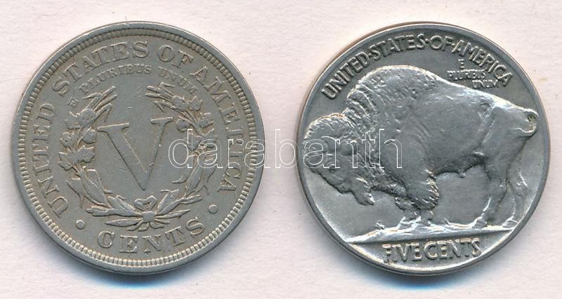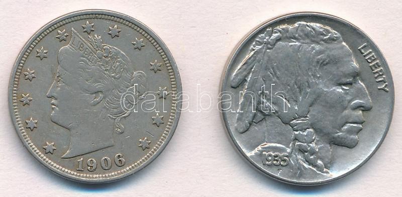 Beschreibung: Amerikai Egyesült Államok 1906. 5c Cu-Ni + 1935. 5c Cu-Ni "Buffalo" T:2