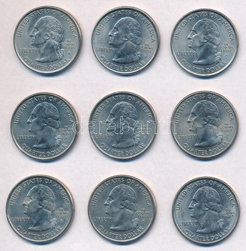 Amerikai Egyesült Államok 1999-2001. 25c Cu-Ni "50 állam" (9... https://www.darabanth.com/de/325-Fernauktion/325.0/Numismatik/Weltweit-Munzen~2000013/Amerikai-Egyesult-Allamok-1999-2001-25c-Cu-Ni-50-allam-9xklf-T1-2--USA-1999-2001-25-Cent~II1804761