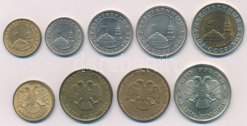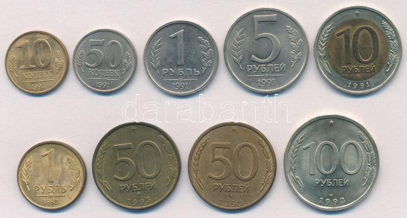 Szovjetunió 1991. 10k-10R (5xklf) + Oroszország 1993. 1R-100R (4xklf) ... https://www.darabanth.com/de/325-Fernauktion/325.0/Numismatik/Weltweit-Munzen~2000013/Szovjetunio-1991-10k-10R-5xklf-plus-Oroszorszag-1993-1R-100R-4xklf-T1--Soviet-Union-1991-10-~II1807798