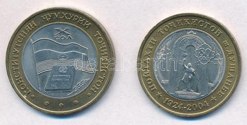 Tajikistan 2004. 3 Somoni "80th Anniversary of the Republic" + 5 Somoni "10th Anniversary of the Constitution" C:AU