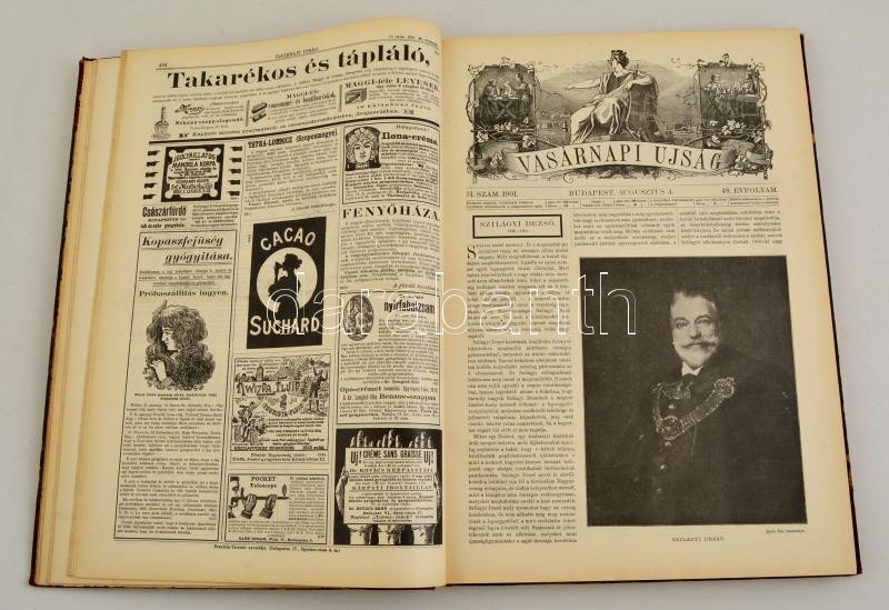1901 Vasárnapi újság, 48. évf., teljes évfolyam, két kötetbe kötve, ki... https://www.darabanth.com/de/326-Fernauktion/326.0/Andere-Sammelgebiete/Drucksachen~500030/1901-Vasarnapi-ujsag-48-evf-teljes-evfolyam-ket-kotetbe-kotve-kisse-kopott-felvaszo~II1814485