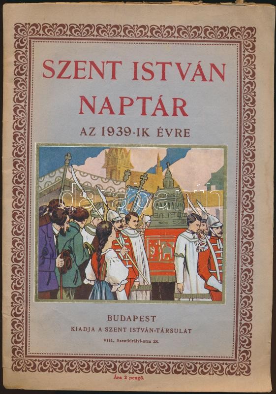 1939 Szent István naptár az 1939-es évre. Bp., Szent István Társulat. ... https://www.darabanth.com/de/326-Fernauktion/326.0/Andere-Sammelgebiete/Drucksachen~500030/1939-Szent-Istvan-naptar-az-1939-es-evre-Bp-Szent-Istvan-Tarsulat-Kiadoi-papirkotes~II1792459
