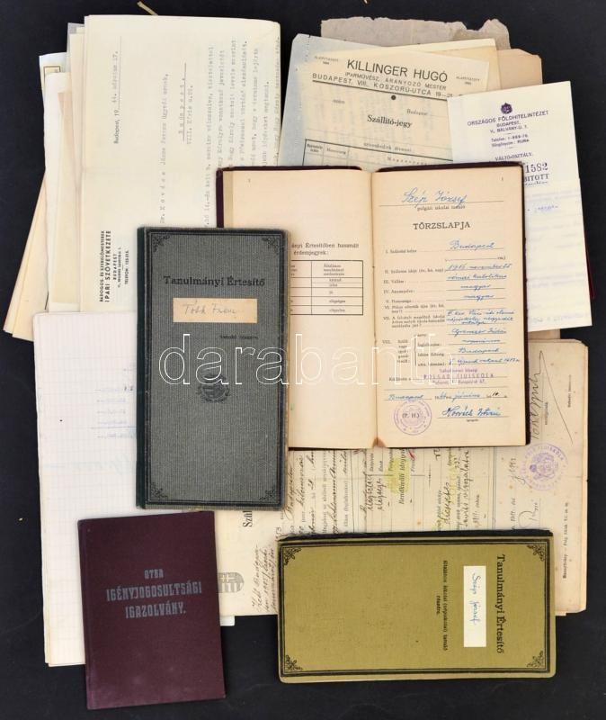 cca 1920-1950 Vegyes papírrégiség tétel: közte okmányok, számlák, isko... https://www.darabanth.com/de/326-Fernauktion/326.0/Andere-Sammelgebiete/Drucksachen~500030/cca-1920-1950-Vegyes-papirregiseg-tetel-kozte-okmanyok-szamlak-iskolai-ertesitok~II1816102