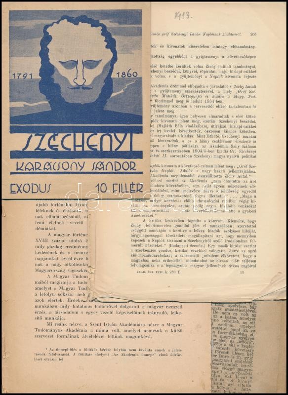 cca 1930-1940 Széchenyi Istvánról írt nyotmatvány és cikkek, összesen ... https://www.darabanth.com/de/326-Fernauktion/326.0/Andere-Sammelgebiete/Drucksachen~500030/cca-1930-1940-Szechenyi-Istvanrol-irt-nyotmatvany-es-cikkek-osszesen-9-db-kozte-Karacsony~II1813441