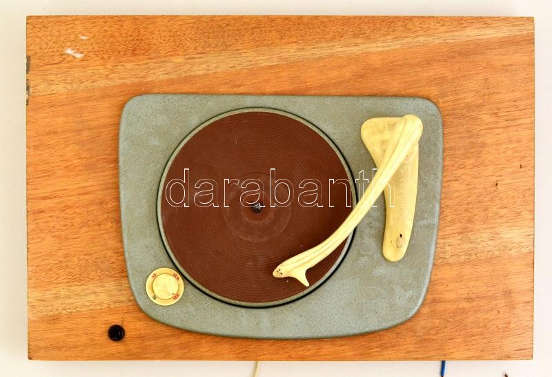 Beschreibung: Supraphon retró lemezlejátszó, nem kipróbált, fa lemezre erősítve, 28×38 cm