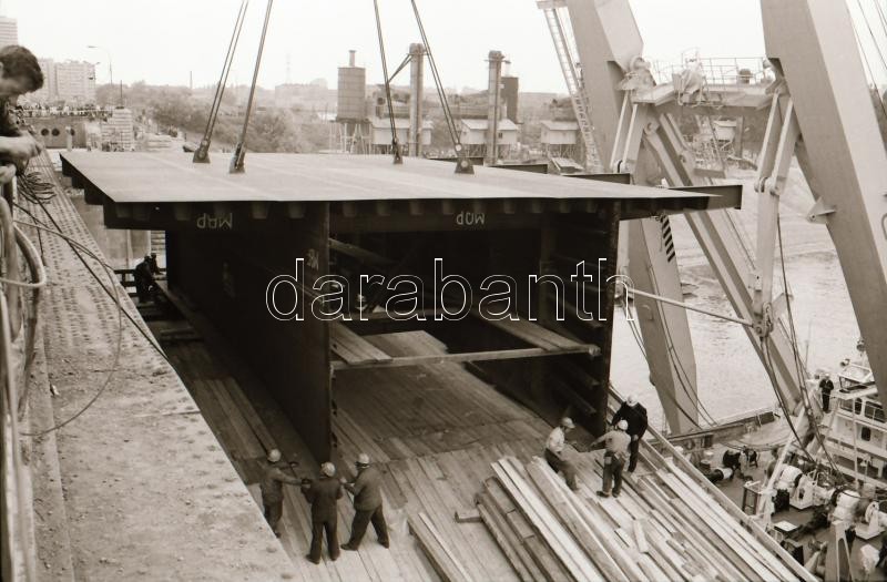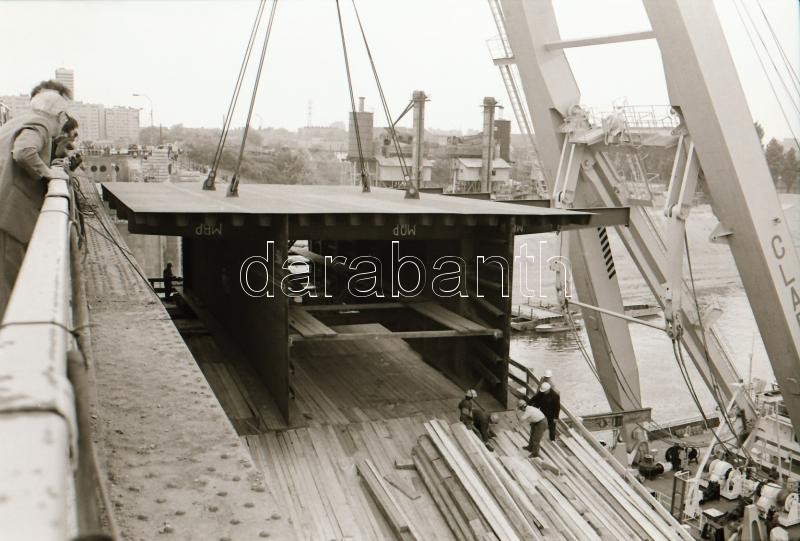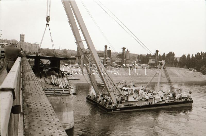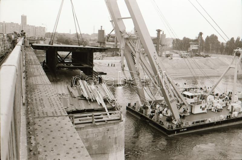 1981. május 12. Budapest, Árpád híd egyik elemének beemelése és a Petőfi híd pesti oldalának átépítése, 38 db szabadon felhasználható, vintage negatív, 24x36 mm