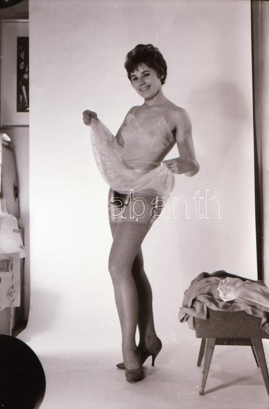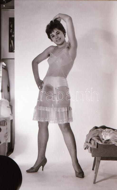 cca 1974 Mini volt a divat, szolidan erotikus felvételek, 5 db vintage fotó + 4 db vintage negatív, a pozitív és negatív képek között nincs összefüggés, 24x36 mm és 17x9,5 cm között