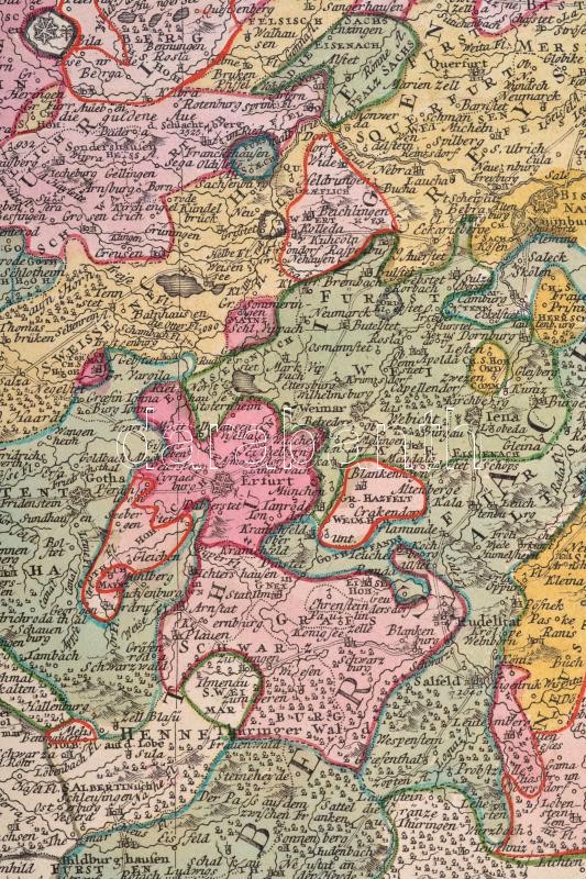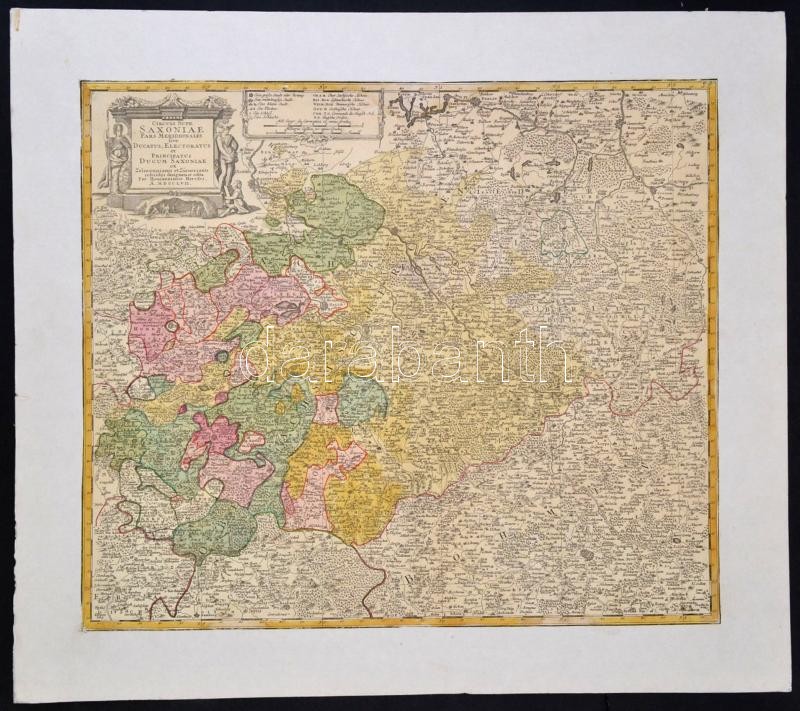 1757 Friedrich Zollmann; Adam Friedrich Zurner: Szászország rézmetszetű térképe. Circuli Super. Saxoniae Pars Meridionalis sive Ducatus, Electoratus et Principatus Ducum Saxoniae : ex Zolmannianis et Zurnerianis subsidijs designata et edita Per Homannianos Heredes. Kartonra kasírozva. / Map of Saxony On cartboard. 57x48 cm