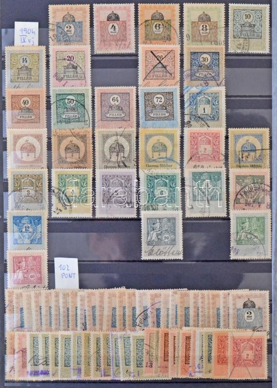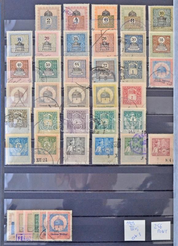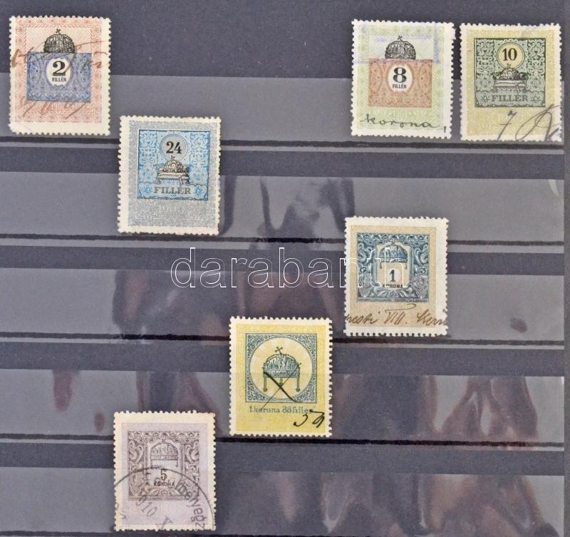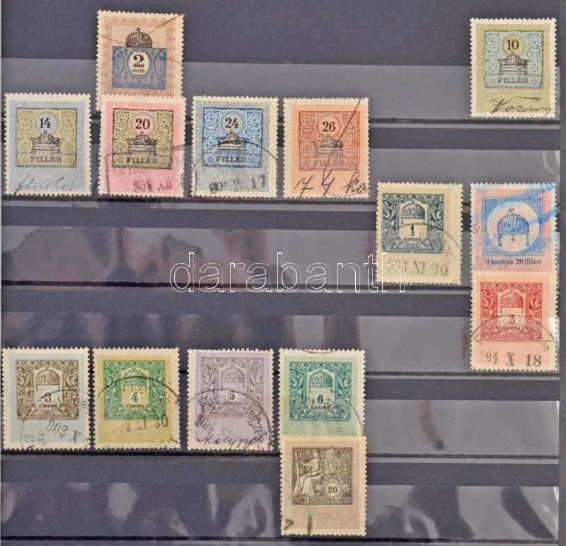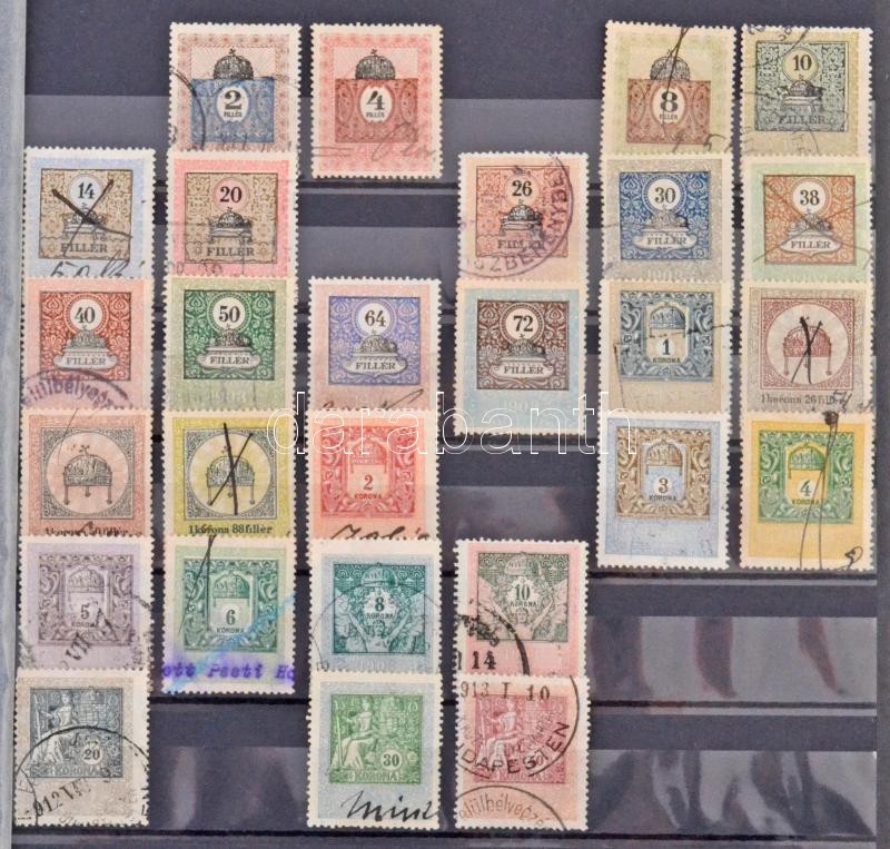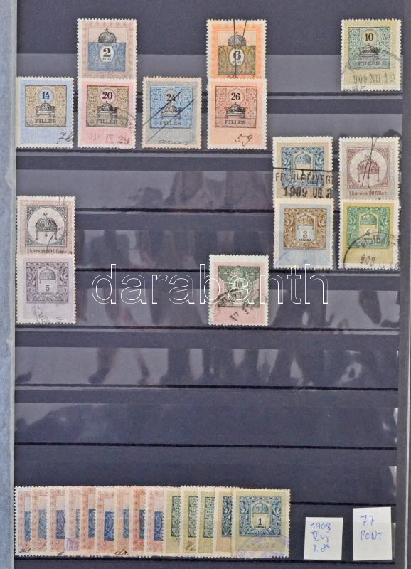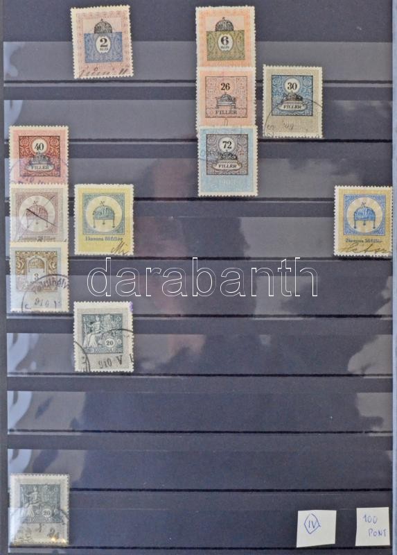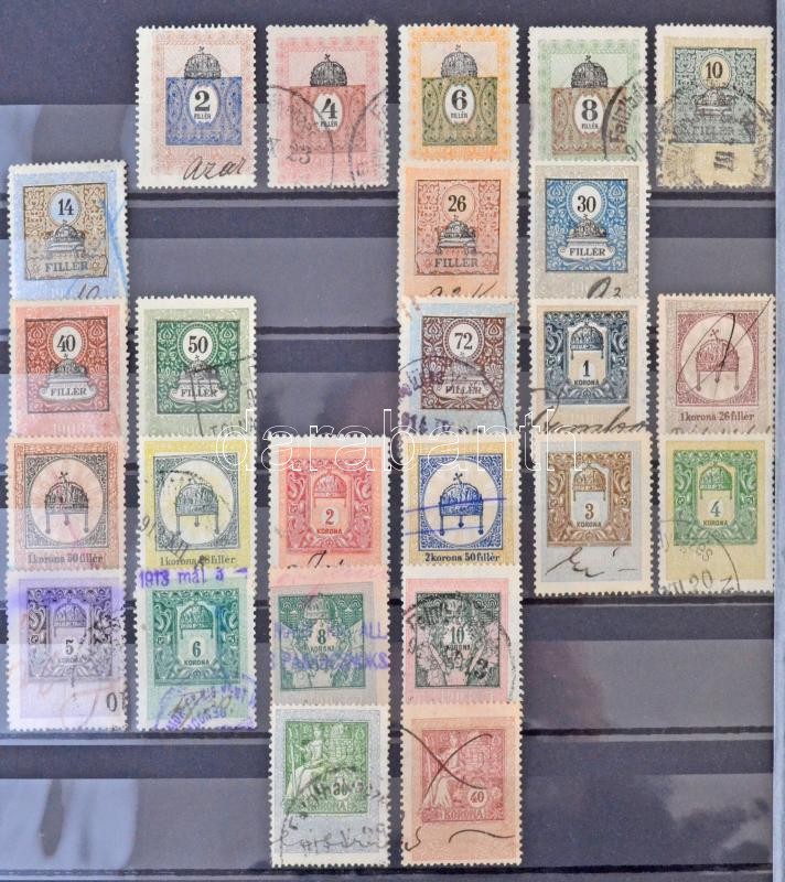 443 darabos okmánybélyeg vízjelállás gyűjtemény 1903-1909 közte rengeteg számvízjel és csillag, hozzá sok másodpéldány 32 lapos A/4 berakó 27 oldalán. Tartalmas anyag!! Mindenről készült kép!! / Collection of document stamps watermark positions, 443 different + a lot of duplicates, very rich material with a lot of VI. and stars on 27 pages of an A/4 stockbook. All scanned!!