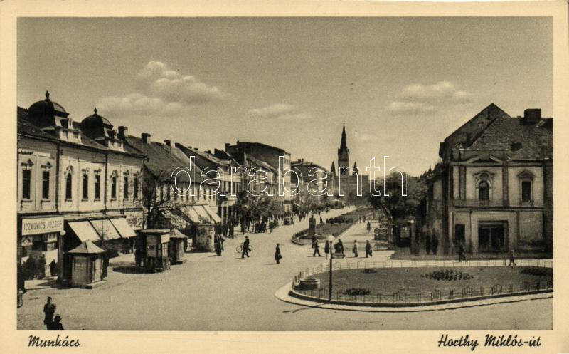 Munkács, Mukacevo, Mukacheve; Horthy Miklós út, Iczkovics József üzlet... https://www.darabanth.com/de/326-Fernauktion/326.0/Ansichtskarten/Karpatenukraine~2500008/Munkacs-Mukacevo-Mukacheve-Horthy-Miklos-ut-Iczkovics-Jozsef-uzlete-street-shop~II1201741