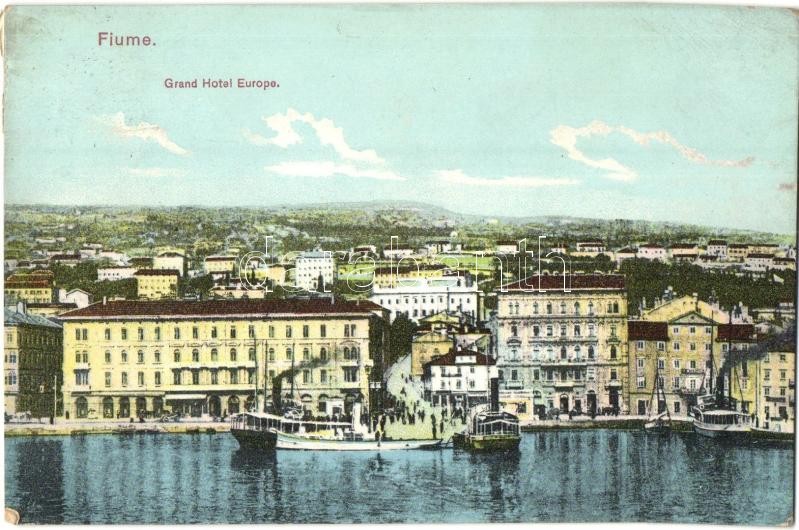 1911 Fiume, Rijeka; Grand Hotel Europe https://www.darabanth.com/de/326-Fernauktion/326.0/Ansichtskarten/Kroatien~2500009/1911-Fiume-Rijeka-Grand-Hotel-Europe~II1813559
