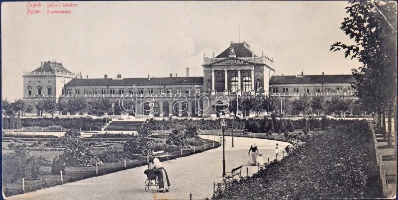 Zagreb, Zágráb; Vasútállomás, babakocsi. Három részes hajtatlan panorá... https://www.darabanth.com/de/326-Fernauktion/326.0/Ansichtskarten/Kroatien~2500009/Zagreb-Zagrab-Vasutallomas-babakocsi-Harom-reszes-hajtatlan-panoramalap-Drzavni-kolodv~II1776686