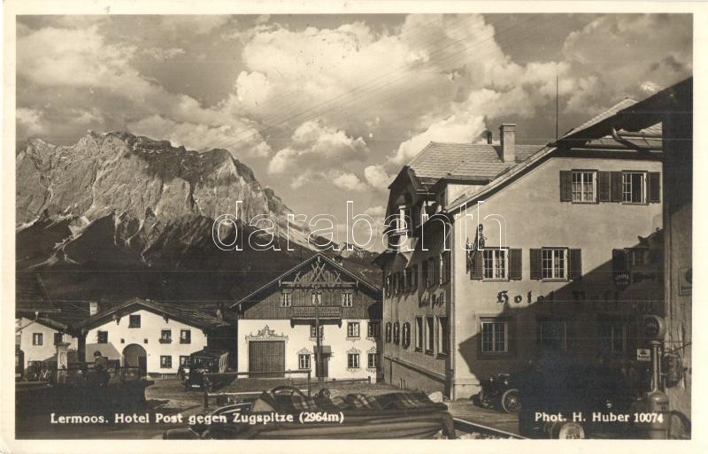 Lermoos, Hotel Post gegen Zugspitze, automobiles https://www.darabanth.com/de/326-Fernauktion/326.0/Ansichtskarten/Osterreich~2500015/Lermoos-Hotel-Post-gegen-Zugspitze-automobiles~II1720937
