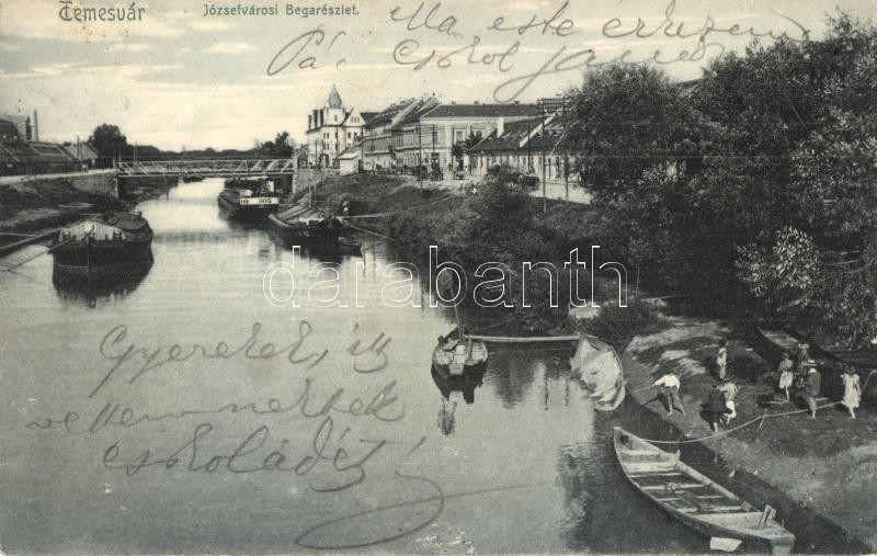 1906 Temesvár, Timisoara; Józsefvárosi Béga hídja, uszályok, csónakok ... https://www.darabanth.com/de/326-Fernauktion/326.0/Ansichtskarten/Siebenburgen~2500001/1906-Temesvar-Timisoara-Jozsefvarosi-Bega-hidja-uszalyok-csonakok-Bega-river-bridge-ba~II1817815