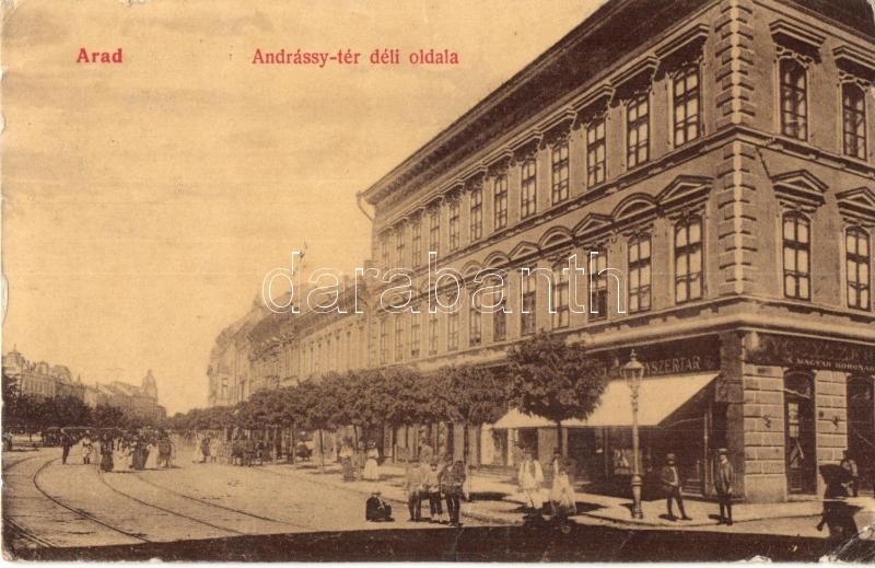 1907 Arad, Andrássy tér déli oldala, Gyógyszertár a Magyar Koronához. ... https://www.darabanth.com/de/326-Fernauktion/326.0/Ansichtskarten/Siebenburgen~2500001/1907-Arad-Andrassy-ter-deli-oldala-Gyogyszertar-a-Magyar-Koronahoz-WL-508-square-phar~II1812761