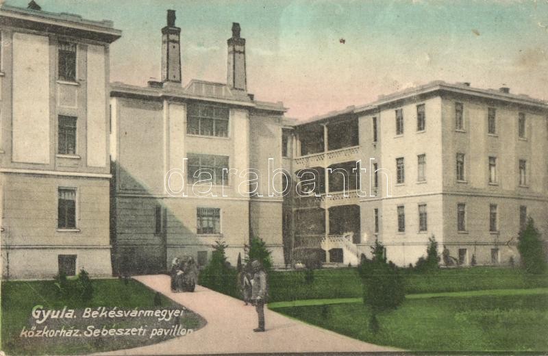 Gyula, Békésvármegyei kórház, Sebészeti pavilon (felületi sérülés / su... https://www.darabanth.com/de/326-Fernauktion/326.0/Ansichtskarten/Ungarn~2500002/Gyula-Bekesvarmegyei-korhaz-Sebeszeti-pavilon-feluleti-serules-surface-damage~II1813986